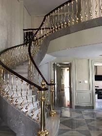 豪華銅樓梯室內(nèi)樓梯:在別墅的樓梯間安裝銅欄桿,既安全又能提升室內(nèi)的豪華感。陽臺和露臺:在陽臺或露臺上 ..